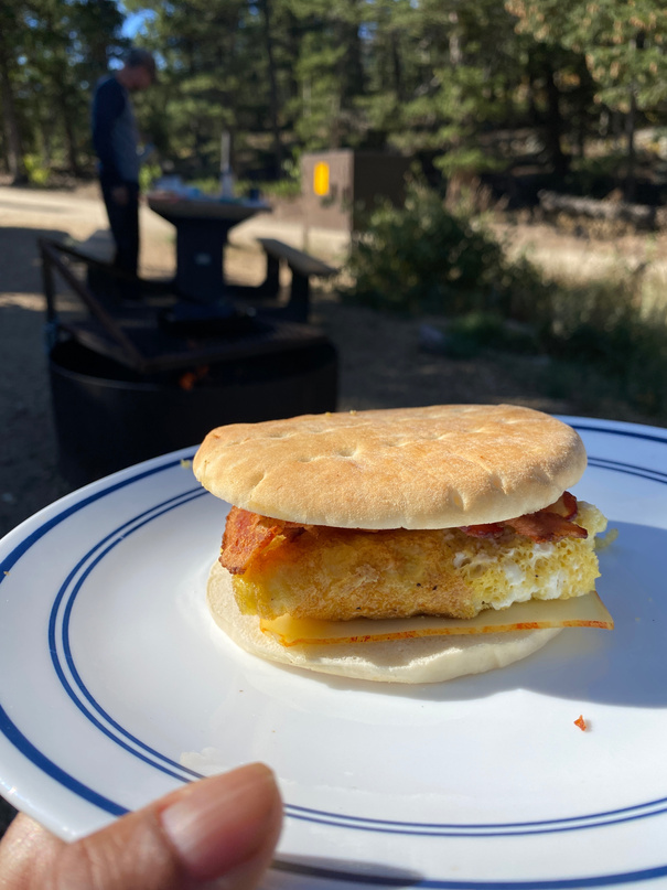 - CAMP : Bobcat campground 39$ dry camping, spot B 10, tucked away in woods, very quiet, but not level at all! Spot next to us looked way better. Easy 21 min drive to Rocky Mountain park!