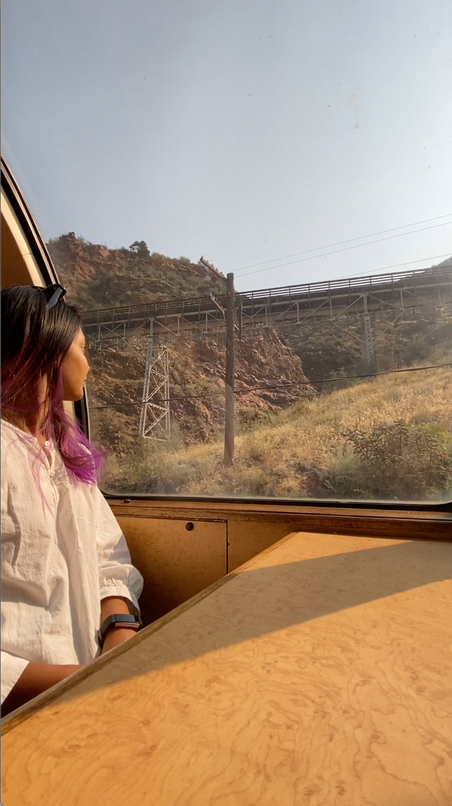 - Royal gorge train breakfast 9:15 am vista dome, pretty cool, terrible breakfast, would take the coach instead of vista and stand outside on open car. We spotted a group of bighorn sheep on the cliffs. They blend in very well.