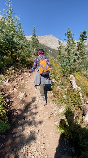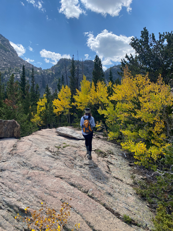 - Then climb up some more, some cliff side hiking, hiking up boulders, beautiful views, lots of aspens changing colors in September.