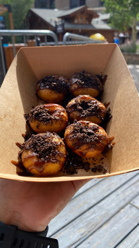 - Sugar lips mini donuts to die for ! Taste like funnel cake but they make it as they get the order and you can see it being made. My fav - Choc sauce w/ Oreo crumbles . Stephens fav - powdered sugar