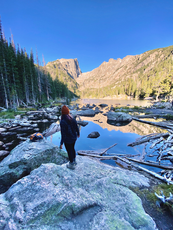 - Even around 7:30 am dream lake looked pretty, with reflection of the peak on the lake. But would prefer to go a little earlier to catch the sunrise golden hour Colors.